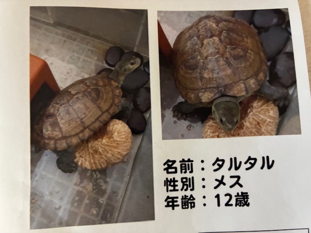 写真を見るとけっこう大きな亀で、メスの12歳と